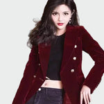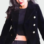 Elegantni sako v brezčasnem kroju z dvojno zapenjanjem, ki poudarja silhueto. Njegova struktura nudi profesionalen in sofisticiran značaj, nositi pa ga je mogoče tako v vsakodnevnih kot tudi večernih prilikah. Minimalističen dizajn ga dela osnovni kos za vsako garderobo.