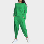 Prikažite svoj stil s tem elegantnim in udobnim dvodelnim kompletom v svetlo kremni barvi. Njegova minimalistična silhueta in moderna oblika ga naredijo idealnega za vsakodnevne videze in priložnostne izhode.