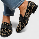 Mokasini Hilda so ključni kos za tiste, ki iščejo edinstven in eleganten slog. Z izrazitim živalskim vzorcem in zaključkom iz črne usnje, ti čevlji popolnoma združujejo klasično udobje mokasin z modernim pridihom in stilom.
