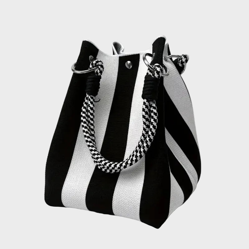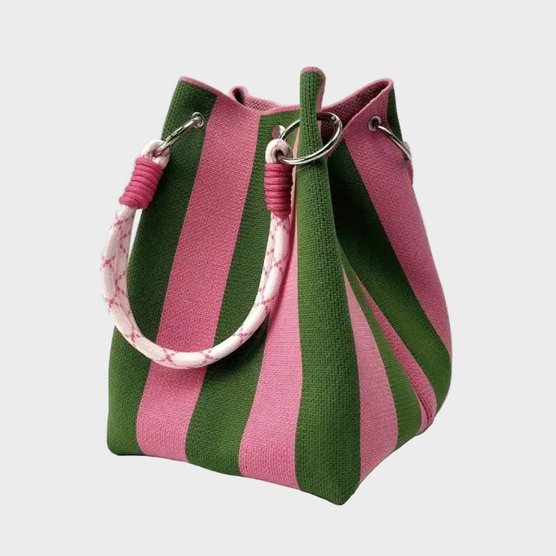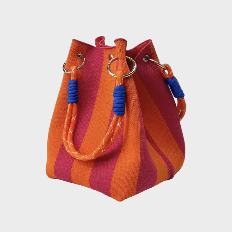 S to živahno torbo pritegnite poglede, zasnovano tako, da naredi vtis povsod, kamor greste. S drznimi barvami in tkano teksturo, ki se počuti tako bogato, kot izgleda, ta torba združuje stil in praktičnost. Debeli ročaji v slogu vrvi in velike kovinske obroče dodajajo igriv, a samozavesten pridih, medtem ko prostoren notranji del enostavno sprejme vse vaše dnevne potrebščine.