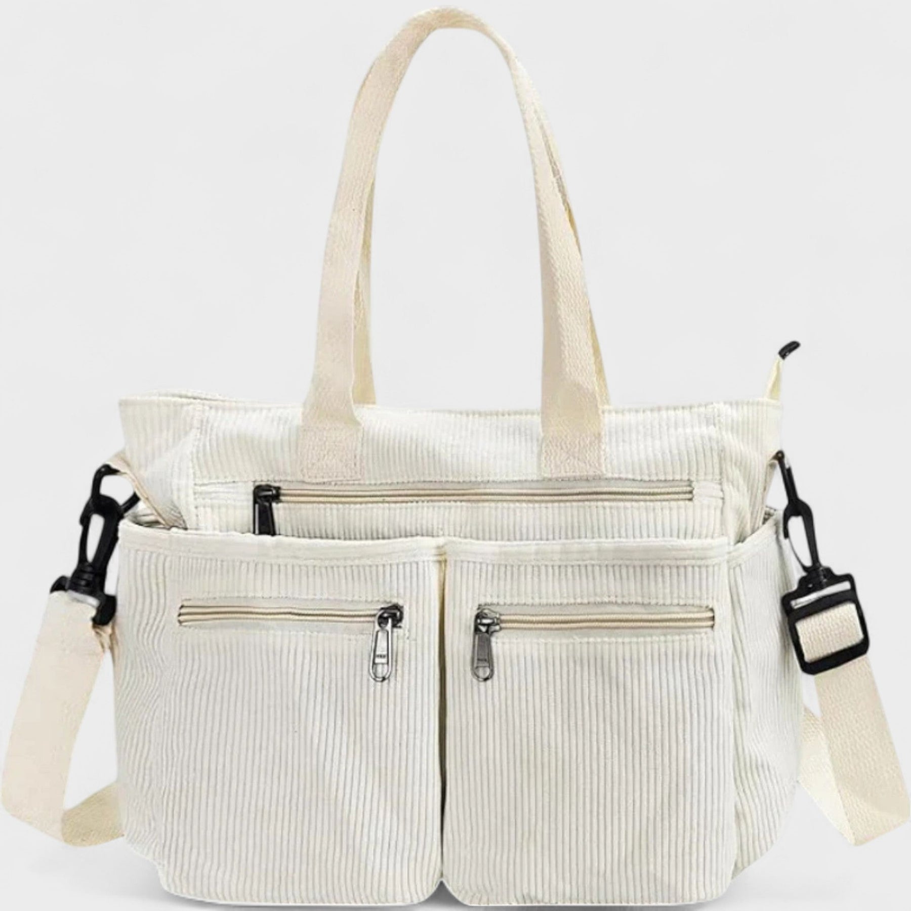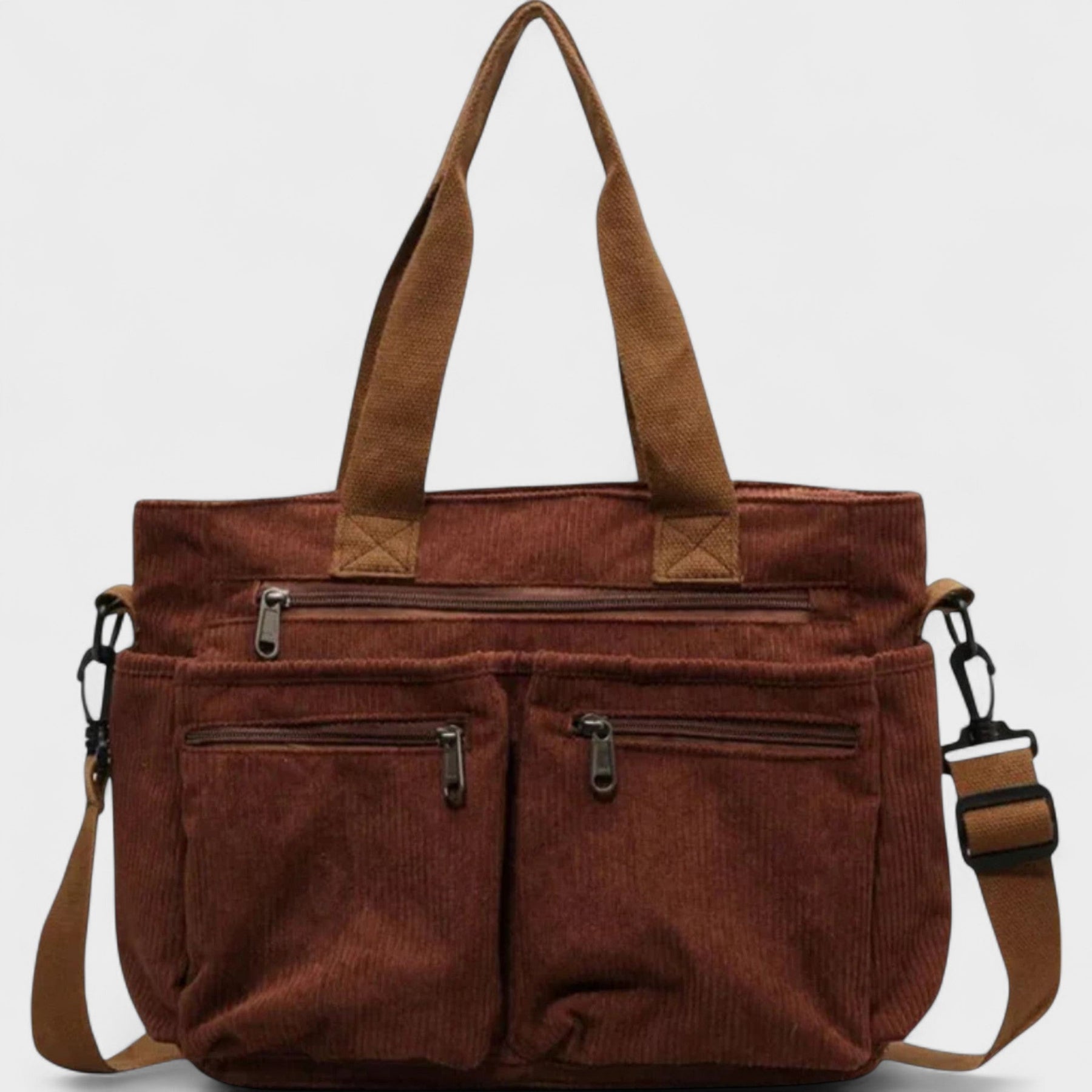 Torba, ki govori namesto vas! Popolnite svoj vsakdanji videz z Urban Cord Tote torbo, ki združuje stil in funkcionalnost ter je idealna za vaše hitre življenje. Ne glede na to, ali greste v službo, šolo ali na sprehod, ta torba ponuja dovolj prostora za vse vaše pomembne stvari in doda pridih stila vašemu videzu.
