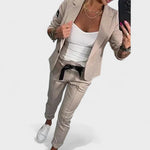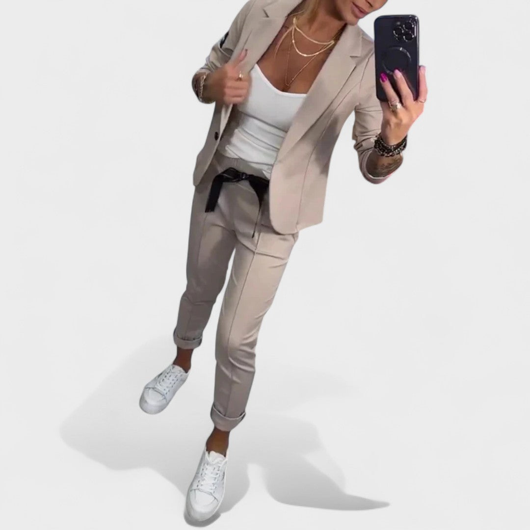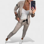 Karolina Prilagojen Set z Mehkim Blejzerjem in Hlačami