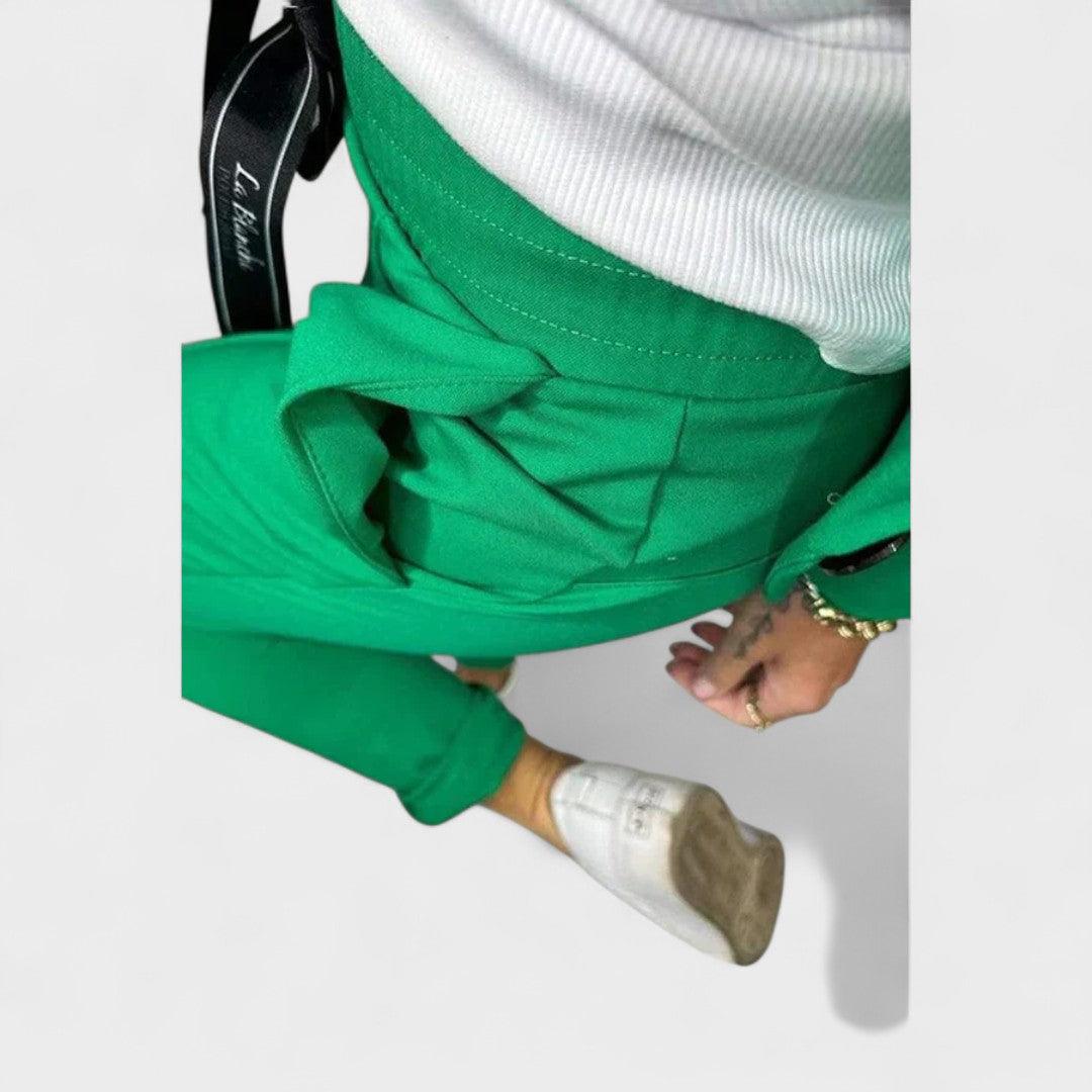 Karolina prilagojen komplet z mehkim blejzerjem in hlačami je popolna izbira za stil in udobje. Ta sodobna in vsestranska kombinacija je idealna za vsakodnevna opravila ali neformalna srečanja.