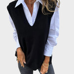 Zasnovan z laskavim V-izrezom za brezčasni videz.