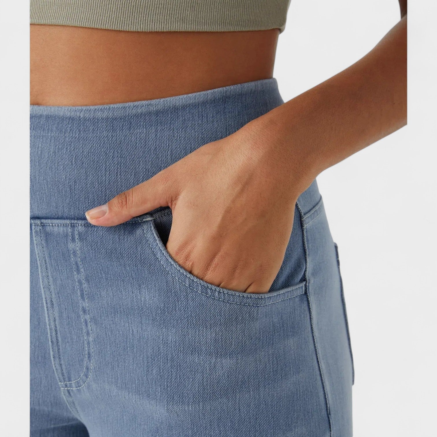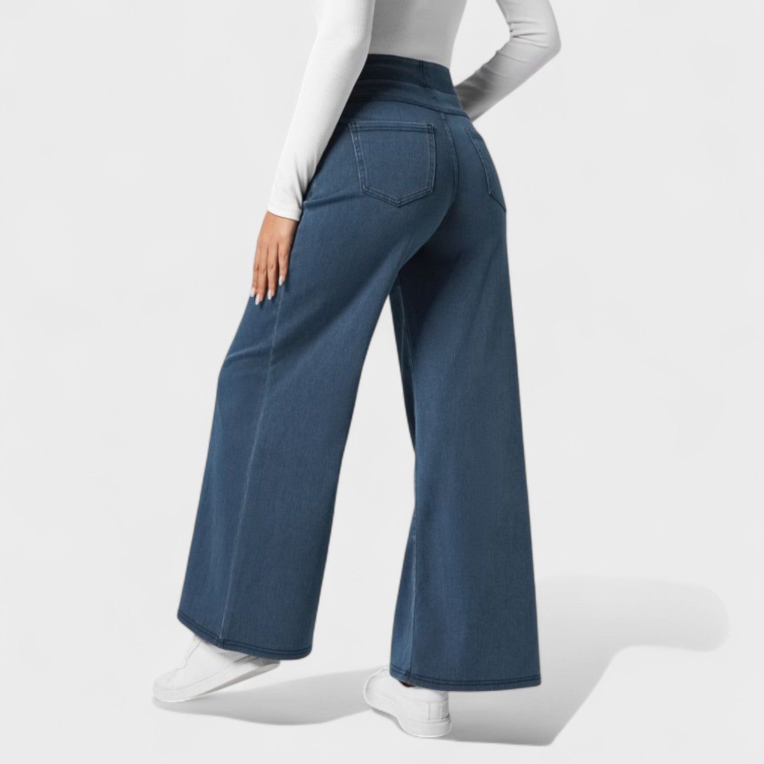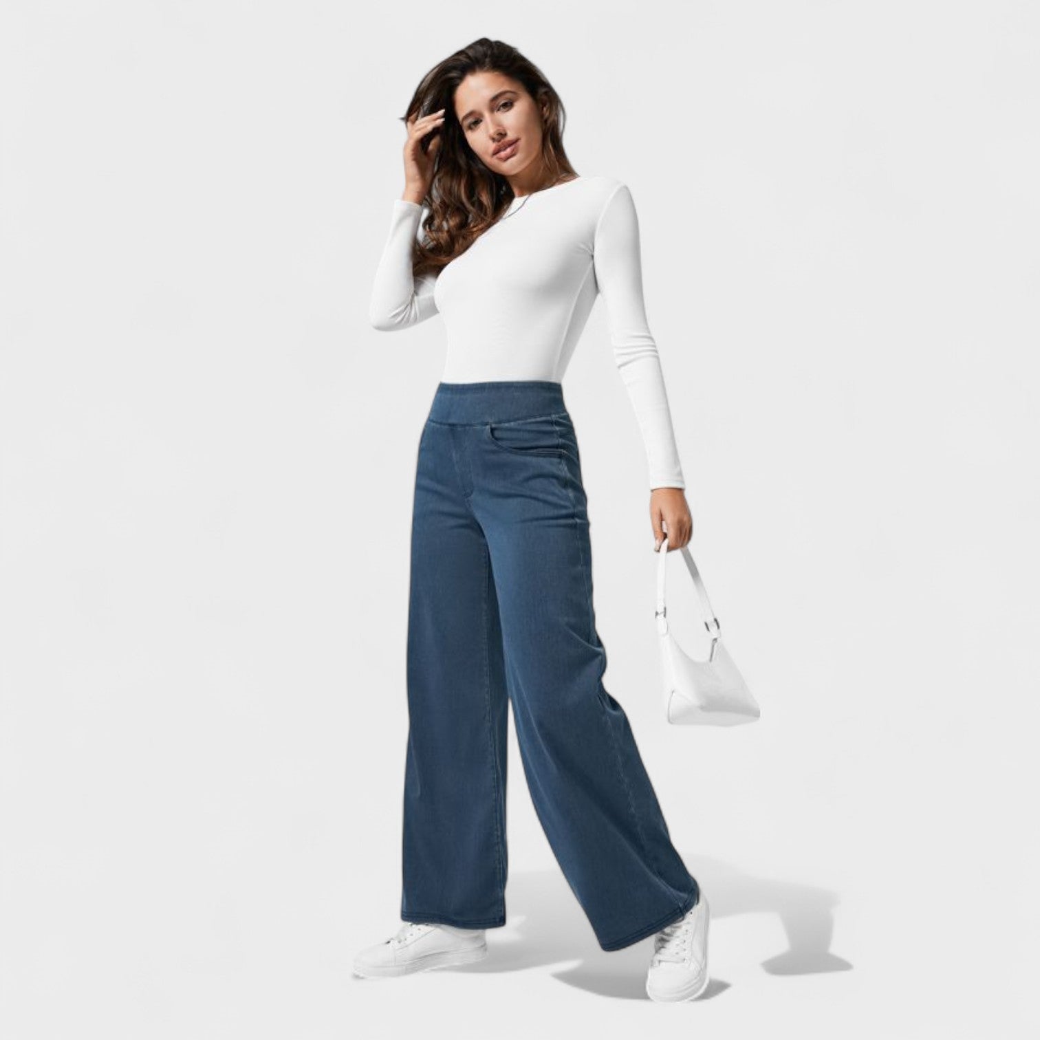 Odkrijte popolno ravnotežje med udobjem in eleganco s hlačami iz traperja Clara. Njihov dizajn širokih hlačnic podaljšuje silhueto brez žrtvovanja udobja, kar je idealno za aktivne ženske, ki želijo izgledati dobro vsak dan.
